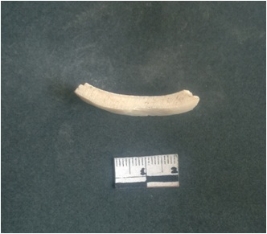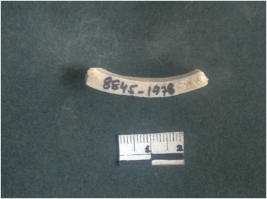 | Description / विवरण | This is a fragment of an unfinished shell circlet. It is an unfinished bangle fragment. It is white in color with polished inner surface and grounded outer surface. Rectangular in cross section. |