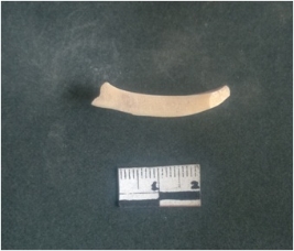 | Description / विवरण | This is a fragment of an unfinished shell circlet. It is an unfinished bangle fragment. It is white in color with polished inner surface and grounded outer surface. Rectangular in cross section. |