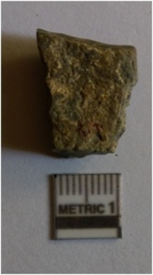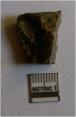 | Description / विवरण | The quadrangular schist flake has flaked edges and negative flake scars. |