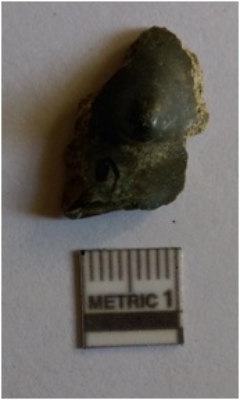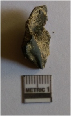 | Description / विवरण | The quadrangular schist flake has flaked edges and negative flake scars. |