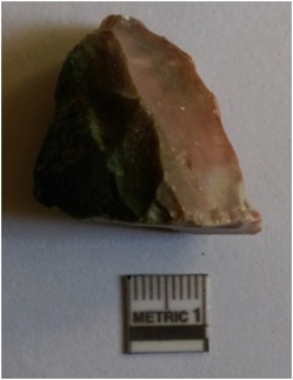 | Description / विवरण | The flaked piece has negative flake scars and sharp edges as a result of flaking. The piece has some cortex on ends and pointed edge. |