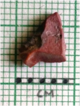| Description / विवरण | Green chert flake is squarish in shape, with sharp edges and a shallow bulb of percussion. Flat flake. |