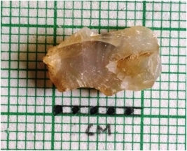 | Description / विवरण | Yellowish chalcedony flake with negative bulb and ripple marks. The flake has sharp edges and bulbous end. |