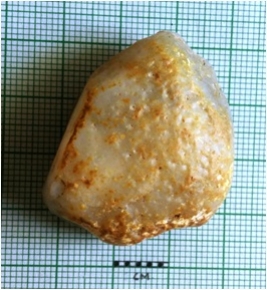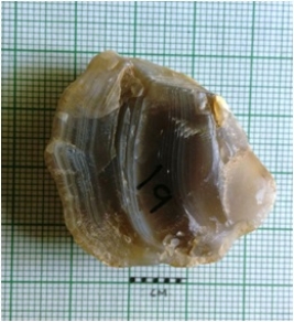 | Description / विवरण | The banded agate piece has rounded edges and flaked ends. Some cortex part intact on the piece. |