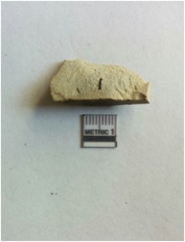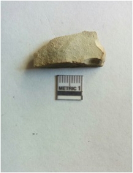 | Description / विवरण | The chert flake is roughly squarish in shape, with sharp ends and flaked surface. The piece has a prominent bulb of percussion and retouched ends. |