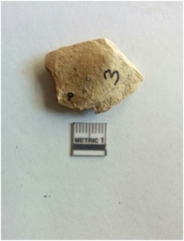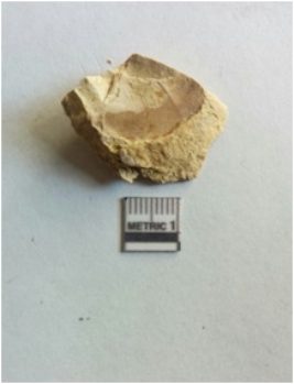 | Description / विवरण | The chert flake is roughly squarish in shape, with sharp ends and flaked surface. The piece has a prominent bulb of percussion and retouched ends. |