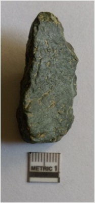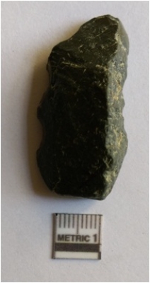 | Description / विवरण | The flake is elongated, of crypto - crystalline material. The flake has flake scars on the surface and sharp edges due to flaking. The truncated flake scars are a result of flaking. Some sides are rounded due to rolling of the piece. Bulb of percussion is visible on the ventral side. |
