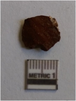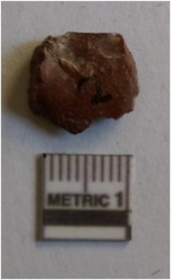 | Description / विवरण | The chert flake is with sharp edges and a shallow bulb of percussion. The flaked edges and ridges are a result of transverse flaking and is roughly flat in section. Red in color. |