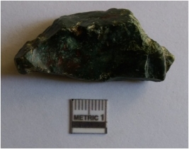 | Description / विवरण | The flake is elongated, of crypto - crystalline material. The flake has flake scars on the surface and sharp edges due to flaking. The truncated flake scars are a result of flaking. Some sides are rounded due to rolling of the piece. Bulb of percussion is visible on the ventral side. |