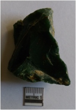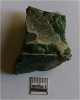 | Description / विवरण | The flake is elongated, of crypto - crystalline material. The flake has flake scars on the surface and sharp edges due to flaking. The truncated flake scars are a result of flaking. Some sides are rounded due to rolling of the piece. Bulb of percussion is visible on the ventral side. |