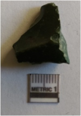 | Description / विवरण | The jasper fragment is crypto - crystalline, with transfuse flaking and negative bulb of percussion and flaked edges. The color is dark, and the flaking pattern has truncated flake scars. |