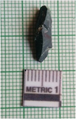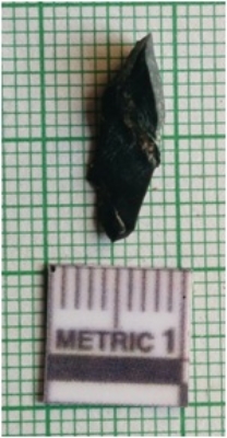 | Description / विवरण | The flake is a secondary flake produced during lithic knapping. The piece has sharp edges and tapering sides. Ridges due to flaking are visible. |