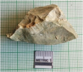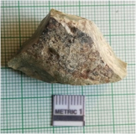 | Description / विवरण | The flake is a secondary flake produced during lithic knapping. The piece has sharp edges and tapering sides. Ridges due to flaking are visible. |
