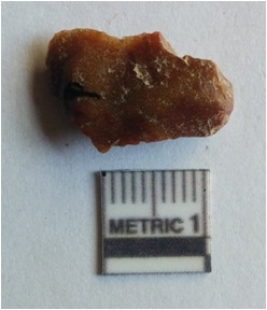 | Description / विवरण | The jasper flake has flake scars and sharp edges, which are now grounded due to prolonged deposition. |
