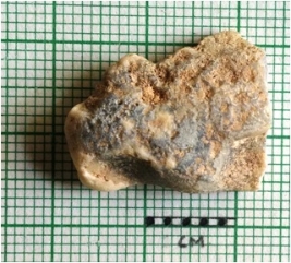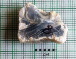 | Description / विवरण | The banded agate piece is rounded, with profuse bands and a cortex on dorsal side. |