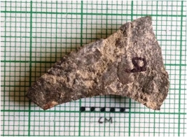 | Description / विवरण | The elongated schist flake has sharp edges and a bulbous end, flaked ridges are visible. |