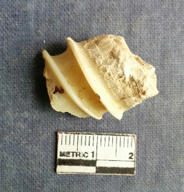 | Description / विवरण | The shell columella pieces is a cut fragment of T.Pyrum shell. It is a likely product in bangle manufacture. The coloumella piece has spiral structure and natural surface polish, the piece is white in color. |