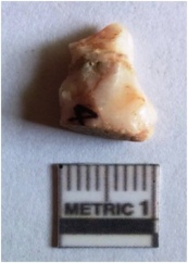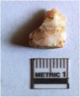 | Description / विवरण | The quartz piece is milky white with flaked edges and truncated flake has a shallow bulb of percussion as a result of flaking. |