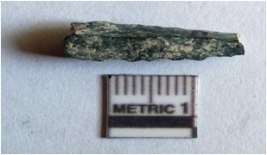 | Description / विवरण | The elongated flake has a roughly square section and flaked ridges as a result of flaking. The flake has flake scars on the surface and the technique scars to be punch technique during flaking. |