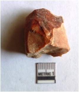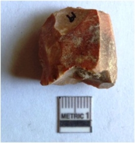 | Description / विवरण | The chert piece is light in color, with flake scars and a shallow bulb of percussion. The flake has sharp edges as a result of flaking. |