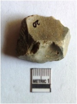 | Description / विवरण | The chert piece is light in color, with flake scars and a shallow bulb of percussion. The flake has sharp edges as a result of flaking. |