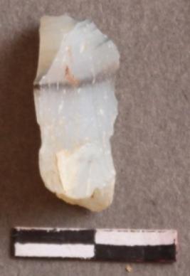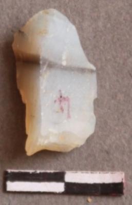 | Description / विवरण | It is a quartz fragment. Rectangular in shape. It is contaminated with ferrous impurities. Translucent in appearance. |