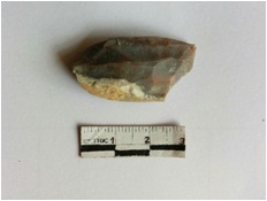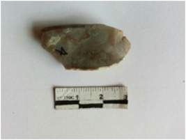 | Description / विवरण | The chert chunk has cortex on one side and the flake portion has sharp edges. A positive bulb of percussion is pressent. |