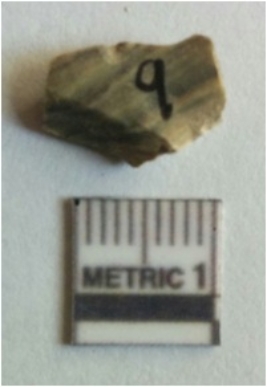 | Description / विवरण | The flake has a medium bulb of percussion and sharp flaked edges. The piece has a flat section and flake scars on the surface pointing at flake detachment process. |