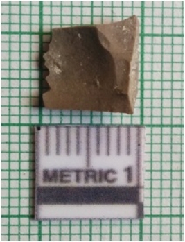 | Description / विवरण | The flake has sharp edges and surfacial flake scars with a flaking basal end. The piece is dark in color. |