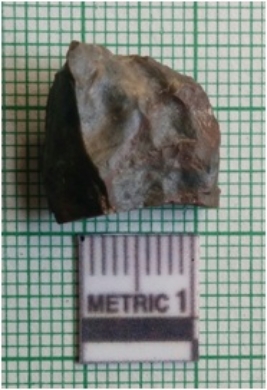 | Description / विवरण | The flake has sharp edges and surfacial flake scars with a flaking basal end. The piece is dark in color. |