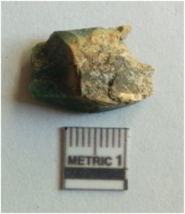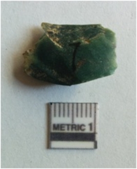 | Description / विवरण | The flake has a flat face with a flake ridge and ripple marks on flaked end. The piece has rounded edges. |