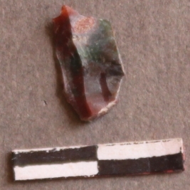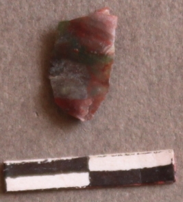 | Description / विवरण | Small flake jasper with ferric impurities ripples and bulb of percussion seen. |