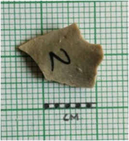 | Description / विवरण | The flake has prominent flake scars on the surface and sharp edges as a result of flaking. The piece is flat and has a flake ridge. The flake is crypto-crystaline with truncated feature on the surface. |