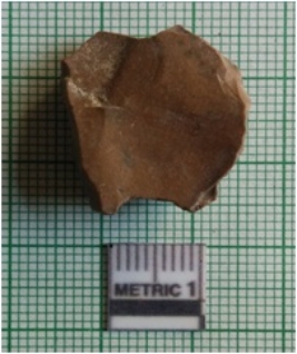 | Description / विवरण | The flake is squarish with sharp edges and flaked sides. The piece has flake scars on the surface and flaked ridges as a result of flaking. |