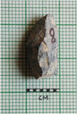 | Description / विवरण | The flake has prominent flake scars on the surface and sharp edges as a result of flaking. The piece is flat and has a flake ridge. The flake is crypto-crystaline with truncated feature on the surface. |
