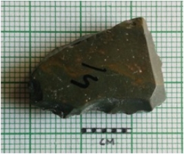 | Description / विवरण | The flake has prominent flake scars on the surface and sharp edges as a result of flaking. The piece is flat and has a flake ridge. The flake is crypto-crystaline with truncated feature on the surface. |
