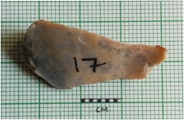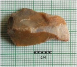 | Description / विवरण | The flake has prominent flake scars on the surface and sharp edges as a result of flaking. The piece is flat and has a flake ridge. The flake is crypto-crystaline with truncated feature on the surface. |