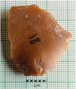 | Description / विवरण | The flake has prominent flake scars on the surface and sharp edges as a result of flaking. The piece is flat and has a flake ridge. The flake is crypto-crystaline with truncated feature on the surface. |