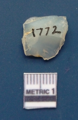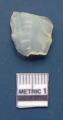 | Description / विवरण | It is a flake. It is broken from some parts. The flake has been removed. It is translucent and is white in color. The ventral surface is plain and the flake has been removed from the dorsal surface. White in color. |