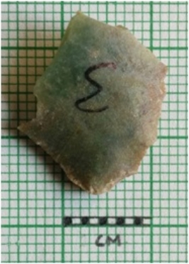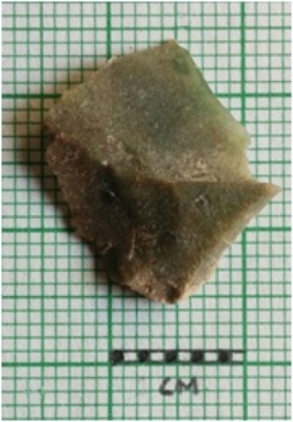 | Description / विवरण | The flat flake has a thin section and sharp flaked edges. The flake has a roughly squarish shape. |