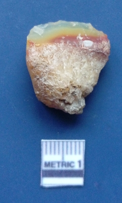 | Description / विवरण | It is a lithic dabitage. The flakes have been removed from the dorsal surface while the ridges are clearly seen. The ventral surface is plain. |