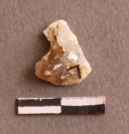 | Description / विवरण | It is a quartz fragment. It has cortex on the surface. Small depression on the fragment due to depositional action |