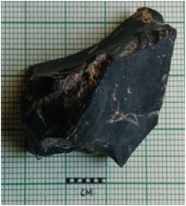 | Description / विवरण | The flake is chunky with surfacial flake scars and sharp pointed ends. The piece has a bulb of percussion and truncated flaking. |