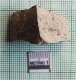 | Description / विवरण | The schist piece has angular flaked edges and retouched ends as a result of flaking. The piece is roughly geometrical in shape and of pale brown in color. |