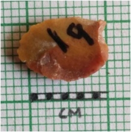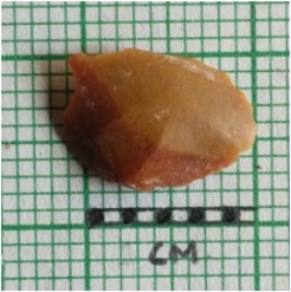 | Description / विवरण | The chert piece is small, flat and oval in shape. It has sharp edges and a bulb of percussion. |