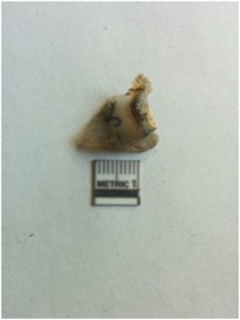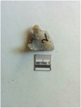 | Description / विवरण | The flake has angular sharp edges and a prominent bulb of percussion. The flake has ripple marks on the flaked surface and sharp ends. |