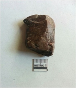 | Description / विवरण | The jasper flake has a clear bulb of percussion visible on the ventral side and sharp flaked edges. |