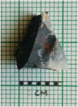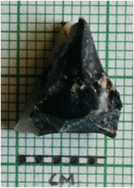 | Description / विवरण | The flake has a characteristic triangular shape with tapering ends and roughly pointed end. The piece has chipped off edges and flat basal end. Surface flake scars are visible. |