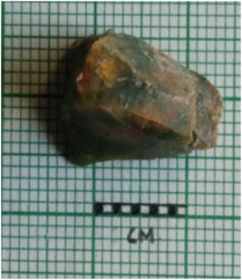 | Description / विवरण | The flake has angular ends and surfacial flake scars, owing to flaking. The piece has flaked ridges and roughly triangular shape. |