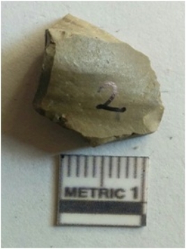 | Description / विवरण | The flake has a mid rib due to flaking and negative bulb of percussion. The flake has a backed end. |
